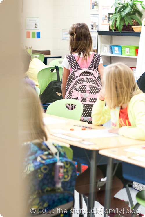 Brooke was at the end of hall, and by the time we got there, most of her class was already there. I guess in fourth grade, most kid’s parents don’t walk them in. Her teacher is super sweet, but fourth grade is all business. We let her quietly sneak in, and watched from the window. Her teacher is nice, and doesn’t like a lot of worksheets and unnecessary paperwork-I love her already!